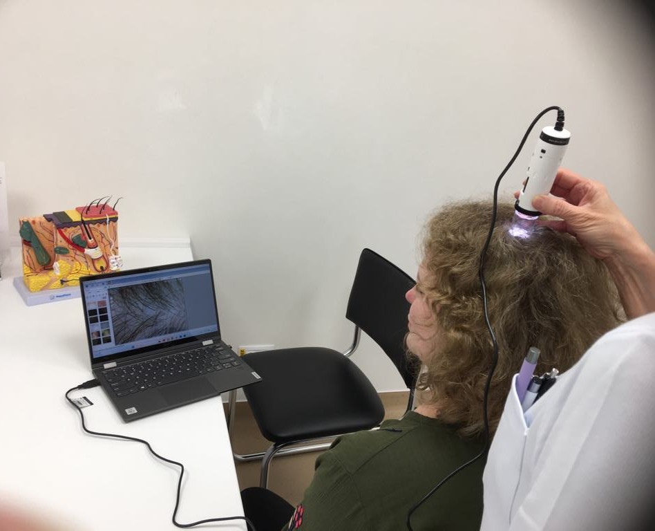 Vizualizarea scalpului si a firelor de par cu o imagine marita de o suta de ori ne aduce informatii pretioase in ceea ce priveste inflamatia foliculului pilos care duce la o eventuala pierdere de par si a problemelor de la nivelul pielii scalpului.